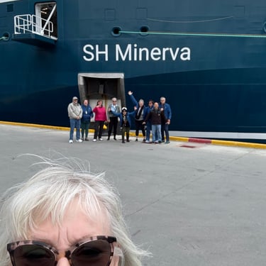 The return voyage through the Drake Passage proved a bit less forgiving than our initial crossing. In the dining room, waves blasted against the windows, and we laughed it off, (well sort of) holding our wine glasses tighter than normal. Determined not to let a little maritime chaos dampen our spirits, we gathered in the lounge for the evening’s entertainment. The swells turned our attempts at dancing into something between comedy and bedlam, the ship's rocking tossing us around like rag dolls. We must have looked absolutely ridiculous, but we laughed anyway, because what else can you do when the Drake Passage crashes your party? (Don't worry, that video will make it on the show!)