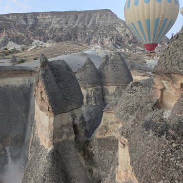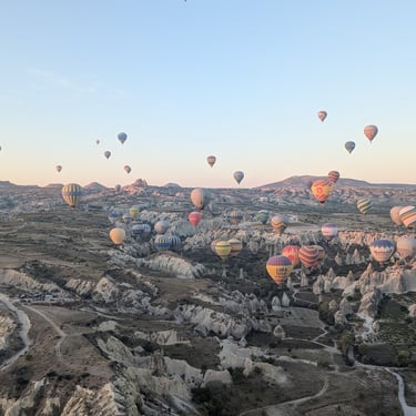 The next morning began before dawn. A hot-air balloon lifted me over the surreal Cappadocian landscape, its fairy chimney formations glowing in sunrise light. I’d dreamed of this ride ever since a balloon once crash-landed on the farm when I was a kid. Afterward, I explored the Goreme Valley’s Open-Air Museum with its rock-cut Christian churches, frescoes I couldn’t photograph but won’t forget. I descended into the Ozkonak Underground City, then ended the day watching a demonstration of Turkish carpet weaving at a local atelier. No carpets came home with me, but the memories did.