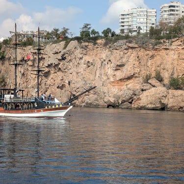 In Antalya, the Mediterranean heat wrapped around me. A city tour carried me through Hadrian’s Gate, past the Clock Tower, and along stone walls dating back to the 2nd century. Later, from the deck of a wooden boat, I saw rugged cliffs, waterfalls, and the coastline opening wide to the sea. At the Archaeological Museum, artifacts over 2,500 years old lined the halls, their sarcophagi astonishingly intact. A peacock strutted through the grounds, a living splash of color among the relics.